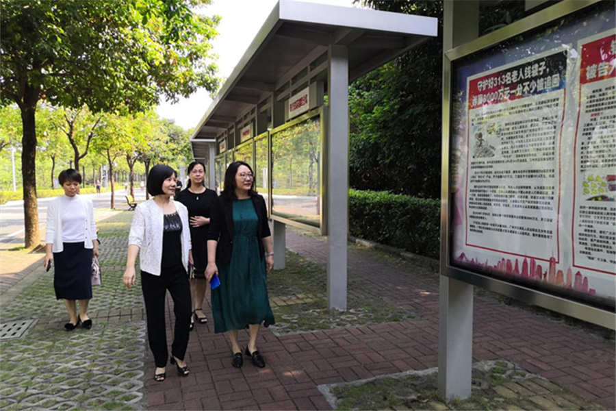 李荣渝副主席一行实地参观了位于花都湖的法治文化主题公园,并与区司法局领导班子座谈,观看新闻媒体和新媒体开展普法宣传的实例,听取了有关工作情况介绍。区司法局局长刘洁鸿介绍了近年来区司法局不断健全完善普法宣传教育工作机制,加强队伍建设,打造普法平台,落实国家机关“谁执法谁普法”普法责任制,弘扬社会主义法治文化,广泛开展内容丰富、形式多样、生动活泼的宣传活动,推进法治花都、平安花都建设及经济社会的全面发展。
