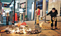 「中元節」、「陰節」、「鬼節」とも呼ばれ、野生の幽霊を祭祀する日である。7月14日に、閻魔王は衣食を漁る主人なしの幽霊を外に放し、そこで、夜になると村人は子供を外へ行き来させないで、幽霊に恐れる。