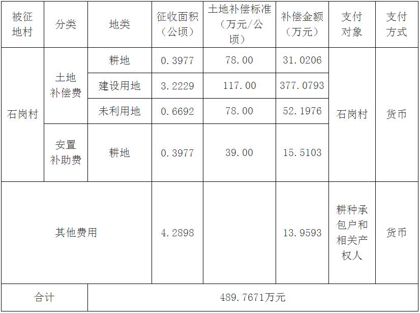 经省人民政府批准(粤国土资(建)字〔2016〕183号文),需将广州市花都区花城街石岗村属下的集体土地4.2898公顷(合64.3470亩)征收为国有土地。现将经依法批准的《征收土地方案》和市人民政府批准的《征地补偿安置方案》内容以及有关事项公告如下:
