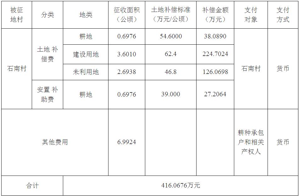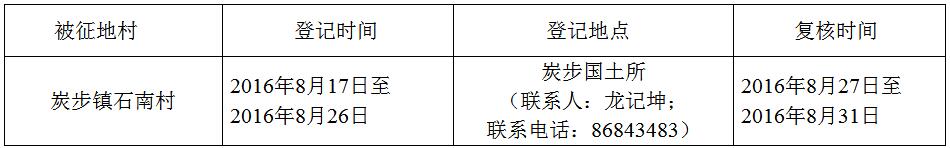 经省人民政府批准(粤国土资(建)字〔2016〕426号文),需将广州市花都区炭步镇石南村属下的集体土地6.9924公顷(合104.8860亩)征收为国有土地。现将经依法批准的《征收土地方案》和市人民政府批准的《征地补偿安置方案》内容以及有关事项公告如下:
