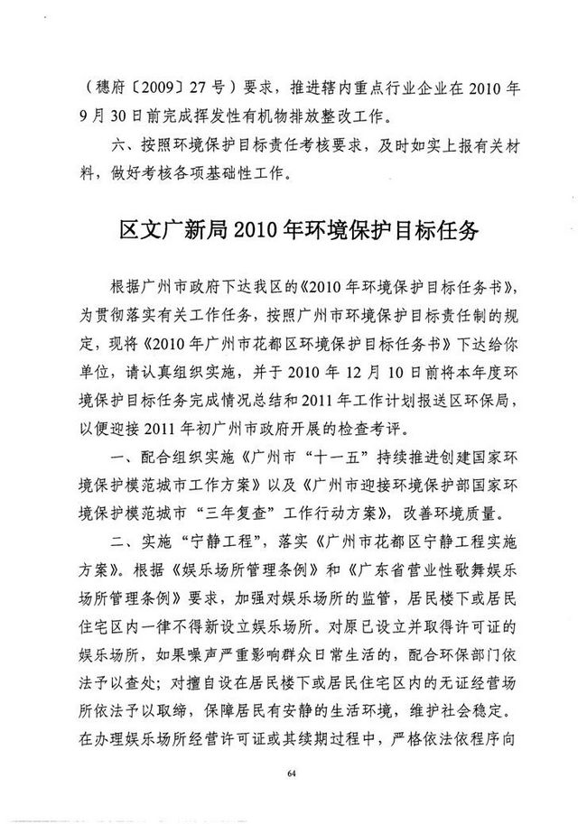 关于印发《2010年广州市花都区环境保护目标任务书》的通知 【花府办[2010]22号】