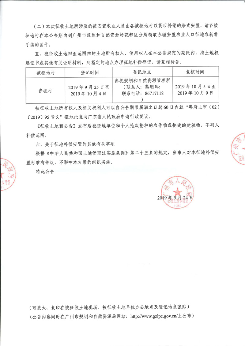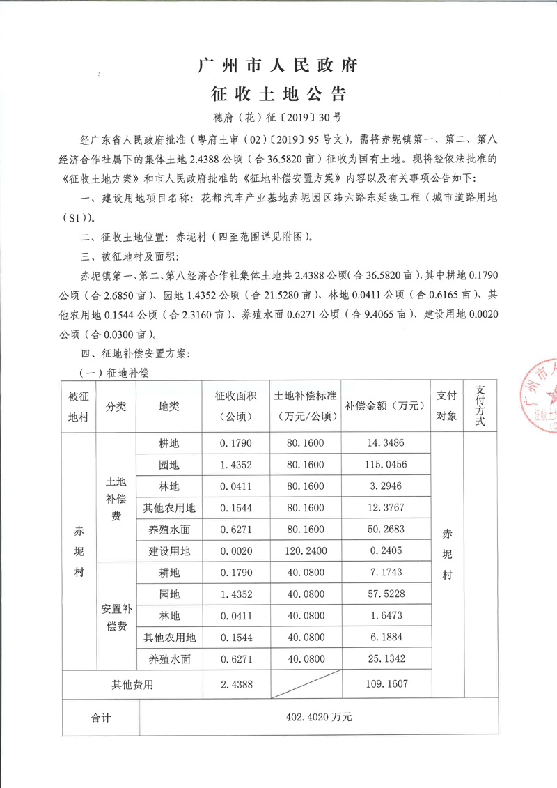 广州市人民政府征收土地公告--穗府(花)征〔2019〕30号