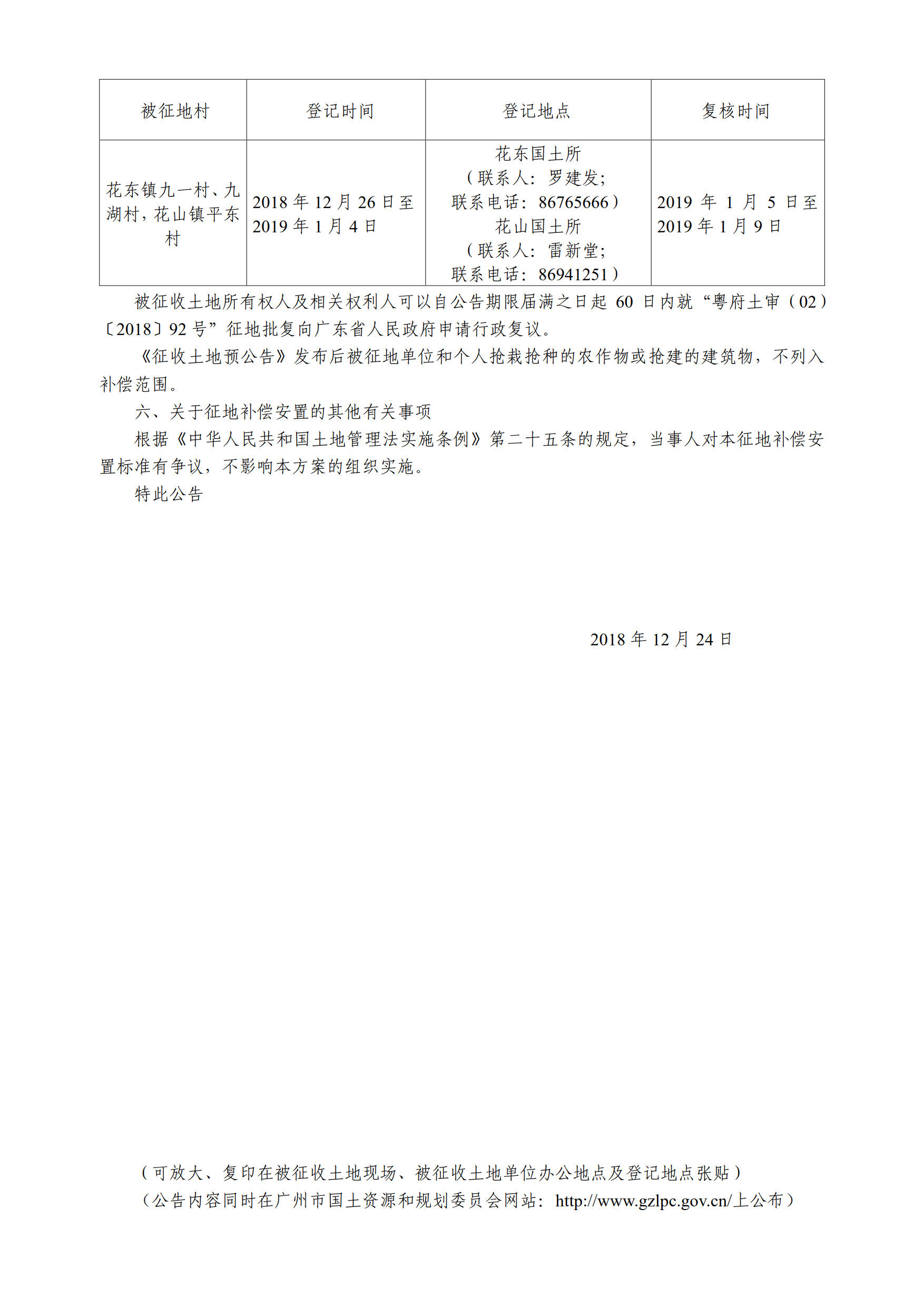 广州市人民政府征收土地公告 穗府(花)征〔2018〕8号