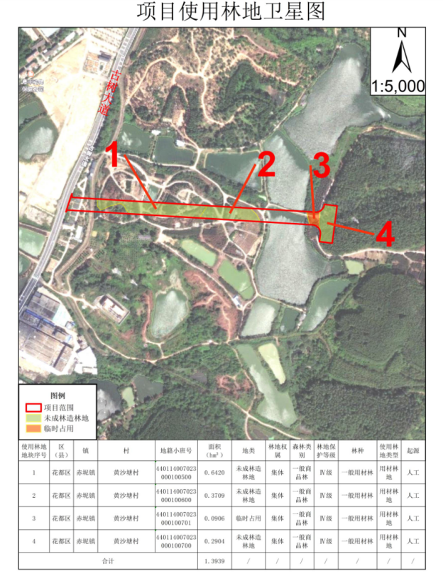 建设项目使用林地公示 花都汽车产业基地赤坭园区赤坭大道北片区规划三路建设工程