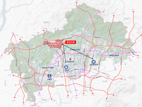 本次规划范围位于花都区狮岭镇,总用地面积约578亩,区域区位优势显著,紧邻珠三角环线高速、许广高速、金狮大道、南航大道等区域交通干线,交通网络便捷;同时地处狮岭皮革皮具时尚智造产业集聚区,具备深厚产业基础和优越区位条件,将打造成为推动狮岭镇时尚产业转型升级的核心载体。