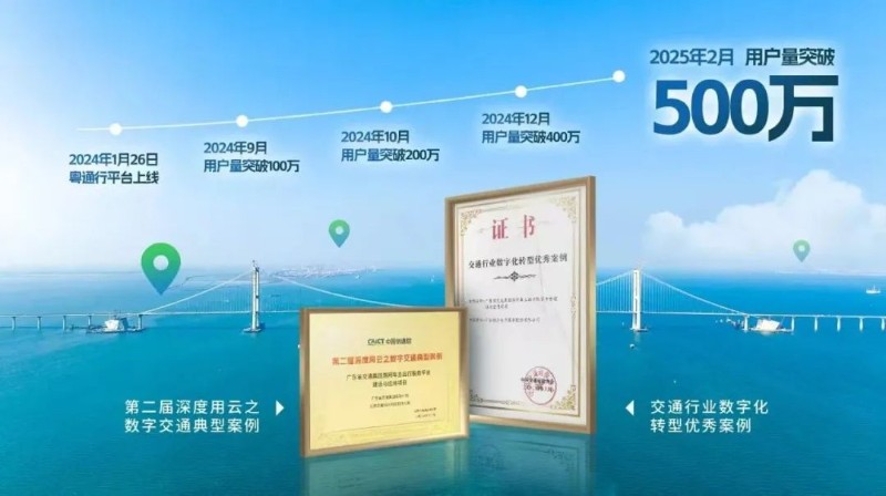 路虽远,行则将至;事虽难,做则必成。“粤通行”平台于2024年1月上线试运营,同年8月发布正式版,仅短短一年间,用户规模已突破500万,并先后入选中国交通运输协会“交通行业数字化转型优秀案例”与中国信息通信研究院“数字交通典型案例”。