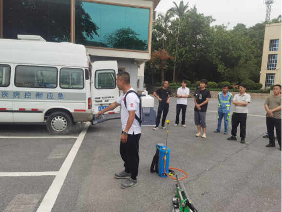 疾控专家选取典型蚊虫孳生地,逐步演示器械调试、喷洒角度及个人防护等关键步骤,强调“精准覆盖、避免过度用药”原则。参训人员分组进行喷雾器械操作及现场消杀模拟,重点演练老旧小区、绿化带、排水沟等高风险区域的处置流程,确保技术规范落地。