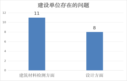 2、设计方面:共发现8个问题。其中2个项目现场变更但未能提供经审查合格的设计变更图纸;6个项目未能提供建筑绿色节能计算书或设计专篇。